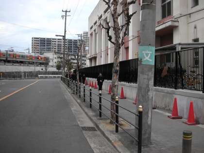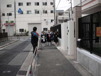 私たちあいさつ運動をして迎える教職員も、コートを着て正門の前に立っています。
