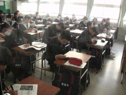 1年生は、『新聞にチャレンジ』をしています。速く終わった人は、読書をしています。