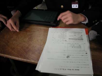 2年生は、校外学習の取り組みで、タブレットを班ごとに活用しています。