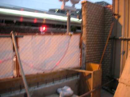 左の写真は、体育倉庫裏から撮影した北側ブロック塀の解体された部分です。右の柱は、門の一部分です。