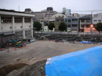 真ん中と右の写真は、仮設校舎2階の校長室から撮影した南館工事現場のものです。