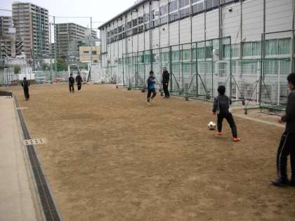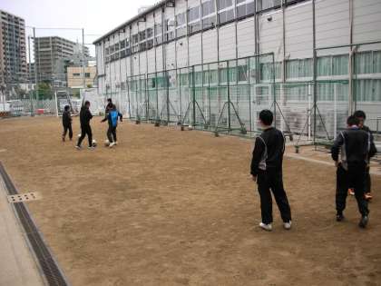 校内のグラウンドでは、サッカー部が練習をしています。