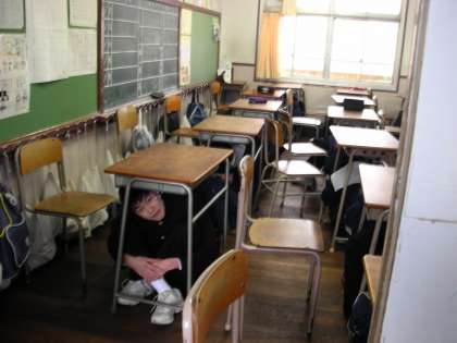 3年生は、体が大きいのですが、机の中に体を押し込むように入っていました。