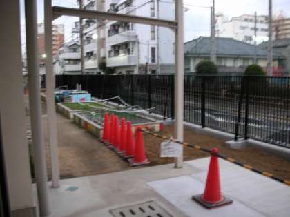 西側(中野小学校側)のブロック塀が解体され、駒込柵に変わりました。