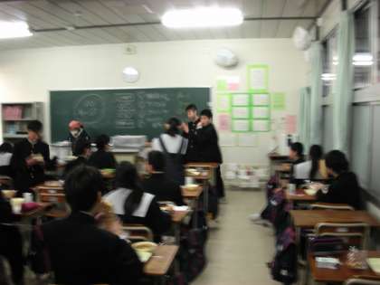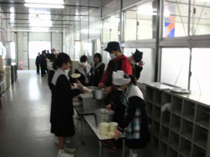 給食の風景です。3学期になり、生徒たちの動きもしっかりとしたものになってきました。当番の人が自覚してテキパキと動くことで、早く準備ができます。