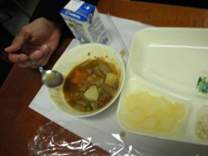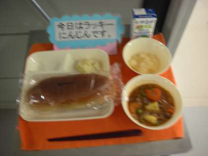 ビーフシチューのニンジンの形が星形のもの、ハート形のものが混ぜられていました。