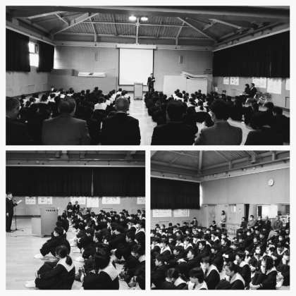 5、6時間目を活用して、都島区保護司会の皆さんによる『薬物乱用防止教室』が行われています。会場は格技室です。現在、生徒たちは、保護司の方からの講話を聞いています。