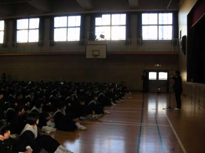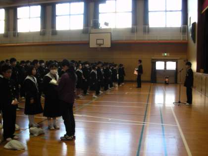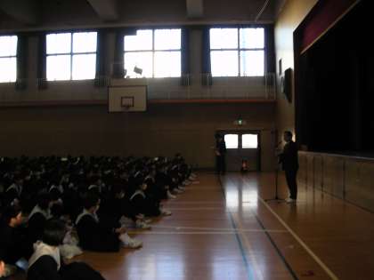 前回は、インフルエンザ等の流行の兆しがあったので、さらなる流行を防ぐために、体育館での集会は行いませんでした。