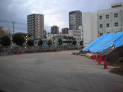 朝の工事現場の写真です。東側の工事車両の進入口から撮影しました。