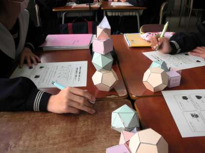 空間図形や立体について、図面だけではわからないことも、目の前にその立体があると、まさに考え方が立体的になってくるから不思議です。