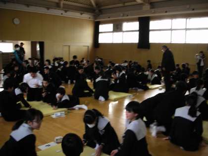 1年生は、25日(金)の5,6時間目に格技室で百人一首大会を行いました。