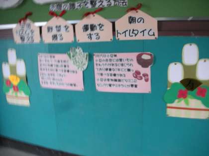 お正月にちなんだ掲示物を見ることができます。お正月の食に関する行事と健康について、その関係が良くわかります。一度是非読んでみてくださいね。