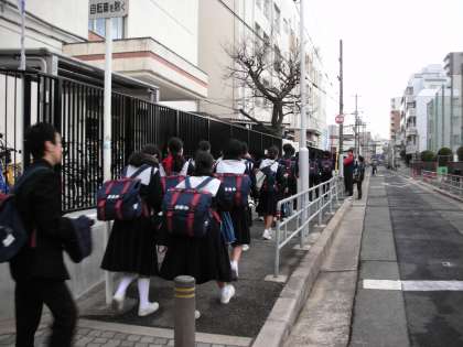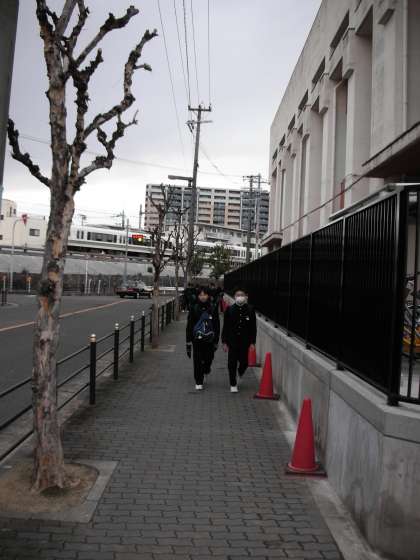 冷たい朝です。生徒たちは、寒さにも負けずに登校してきます。