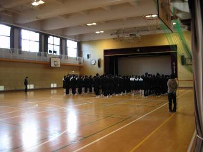 1年生学年集会 公開日 2019/01/29 更新日 2019/01/29 お知らせ 1年生は、体育館で学年集会が行われようとしています。 起立して、整列しています。5分前行動ができています。 いいね(0)