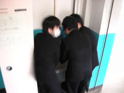1つの水道の蛇口に、3年生男子が3人集まって、手を洗っています。ほほえましいシーンです。