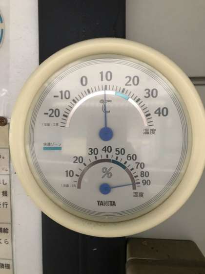 午前7時20分の温度計は、気温10度、湿度90%を示しています。雨なので空気の乾燥はありませんが、温度の針より肌寒く感じます。今日も、健康に気をつけて元気に過ごしましょう。