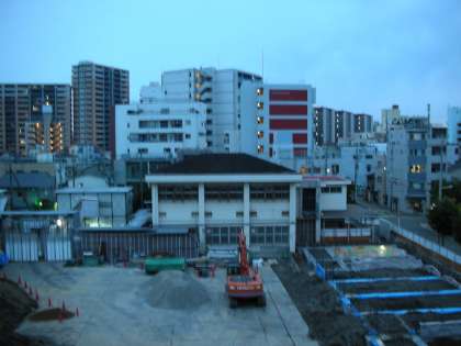 写真は西館4階から見た東の空です。雲が空一面を覆っています。雨が降るかもしれませんね。