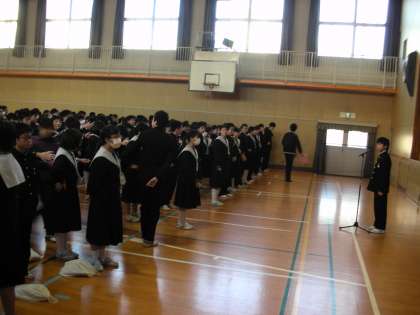 校長からは、3年生の私立高校入学試験についての話と、これから結果が出てくるけれどもお互いを支えあいながら、入学試験という試練に打ち勝ってほしいことをお話しました。