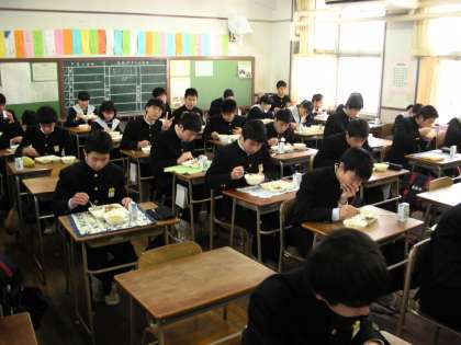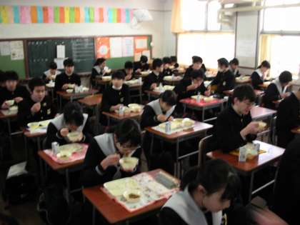 3年生は、久しぶりに穏やかな気持ちでクラスのみんなと給食を食べています。