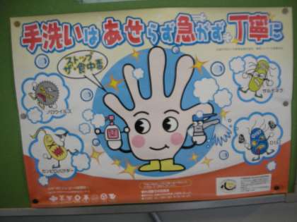 右は、「手をしっかりと洗おう」という啓発ポスターです。都島中学校の皆さんは、日ごろから手をしっかりと洗う習慣ができています。お家でもその習慣を守ってくださいね。