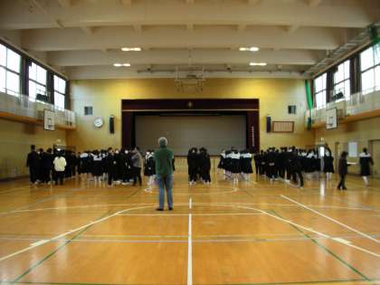 体育館では、2年生の学年集会が始まろうとしています。 これから整列をするところです。