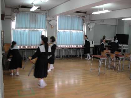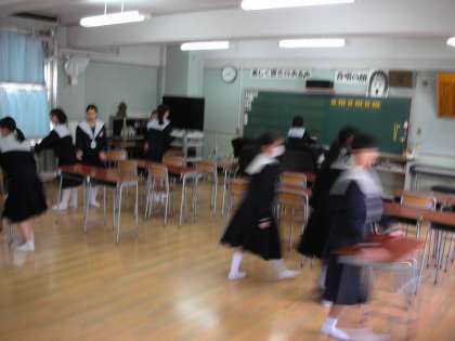 音楽部が部活動のために、教室の模様替えをしています。