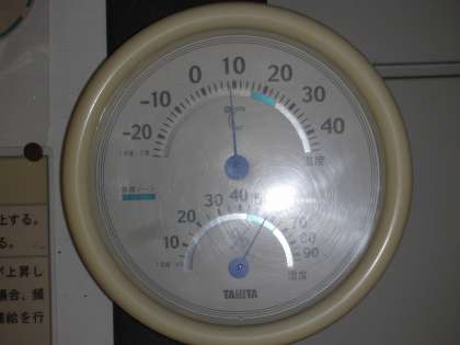 午後1時の温度計です。 気温8.2度、湿度56パーセントです。 やはり、気温は低いですね。風が冷たいです。
