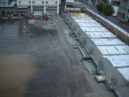 南館が建つところには、ビニールシートのようなものが敷かれています。数多くの鉄筋が上に伸びてきました。