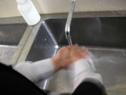 昼食時間前の生徒の様子です。みんな手を洗っています。