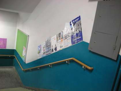 西館の南側の階段です。進路に関するポスターが掲示されています。掲示物は、決していたずらされることなく、きれいに貼ってあります。生徒の皆さんが大切に扱っているので、このような状態が保てています。当たり前のことかもしれませんが、素晴らしいことですね。
