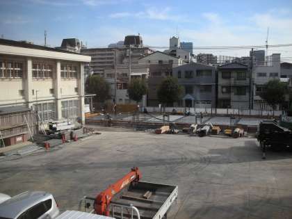 コンクリートを流し込むための型枠の材料が搬入され、それが順次設置され始めました。もうすぐ1階い部分にコンクリートが流し込まれるのではないでしょうか。