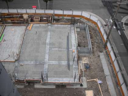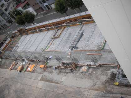鉄筋の格子が見えます。周囲が木枠で覆われています。