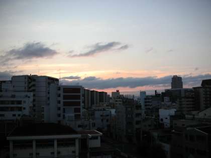 写真は屋上から撮影した東の空の様子です。今日は、昨日の雨から一転、良いお天気になりそうです。