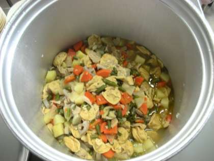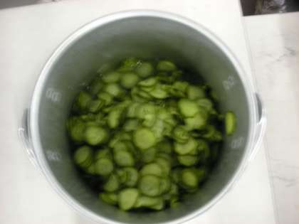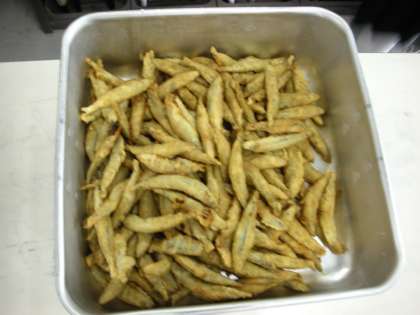 左から、きびなごの天ぷら、あっさりキュウリ、一口がんもとだいこんの煮物です。これを食器に取り分けていきます。