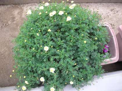 仮設校舎前には、プランターに植えられた植物があります。ボランティア部の皆さんが育ててくれています。