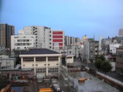 写真は、西館4階から見た東の空です。空一面、雨雲が覆っていますが、日の出の時間が早くなっているので、明るくなっています。