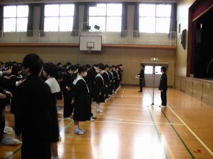 生徒会長の号令で全校生徒が整列します。