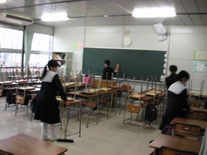 学活が終わると、清掃の時間です。1日しっかりと過ごせたことに感謝して、心を込めて清掃をします。