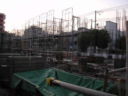 足場の支えになる柱が、高く伸びています。