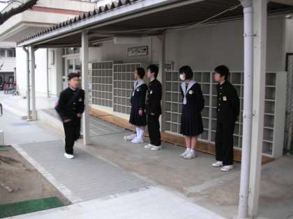 今日も風紀委員の人たちがあいさつ運動をしています。
