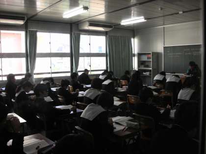 生徒たちが問題を解いています。山川先生が解き方を説明しています。