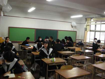 今日行われている大阪公立高等学校の一般選抜試験を受験しない3年生は、登校しています。2組と3組の教室で先生の指示に合わせて取り組みを行います。