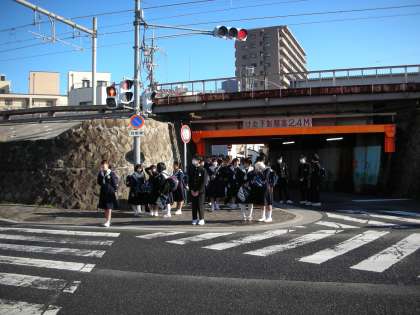 信号を守って、登校してきます。