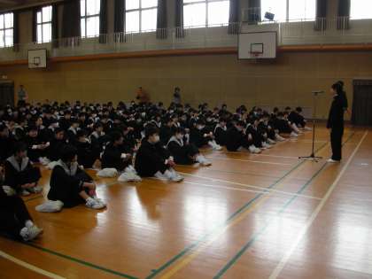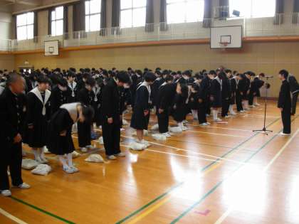 昨日は、平成30年度の修了式が行われました。修了式もいつもの全校集会と同じように、生徒会が号令をかけて整列します。