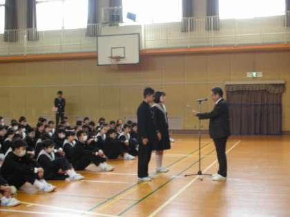 まず、修了証を2年生と1年生の代表の人に手渡されます。