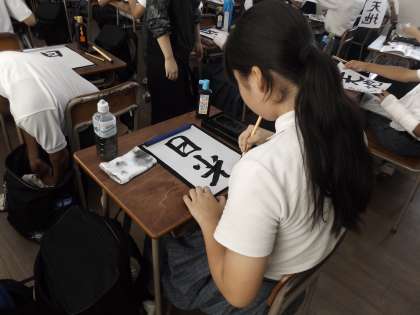 1年生の国語では、書道を学習しました。「天地」・「日光」の練習をしました。六稜祭で展示で発表する予定です。