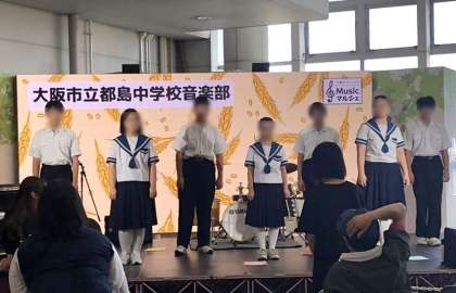 27日にモノレール万博公園駅コンコースでMusicマルシェのイベントがあり、本校音楽部が出演しました。イベント会場に迫力のある素晴らしい歌声が響き渡り、集まった方々や通り通りかかった方も足を止めて見惚れていました。