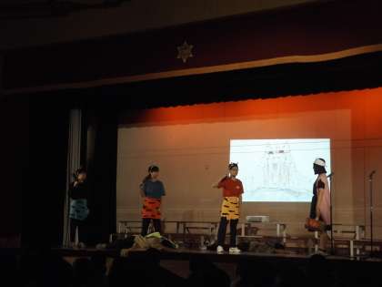 3年生では、桃太郎が植物であるという設定でオリジナルの台本を作成し、演劇をしました。ダンスあり、演奏あり、歌ありと素晴らしい発表でした。