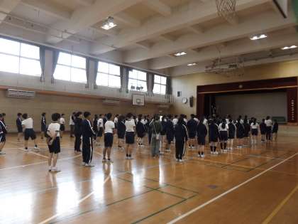 本日は、スポーツ大会に向けて学年ごとに練習しました。入場や各競技の集合の仕方や隊形等を練習しました。