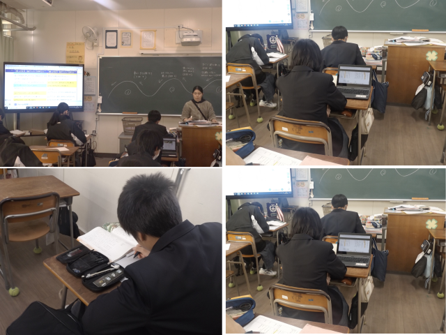本日より、2年1組、1年生全クラスが学級閉鎖を明けて、3日ぶりに全クラスの授業が開始されました。本日の1年生の国語の授業では、「トロッコ」について学習し、文章から行動の描写や情景の描写を抜き出し、その関連性や表現の仕方について学びました。また、指導主事が来校し、国語の授業を参観し、指導助言いただきました。